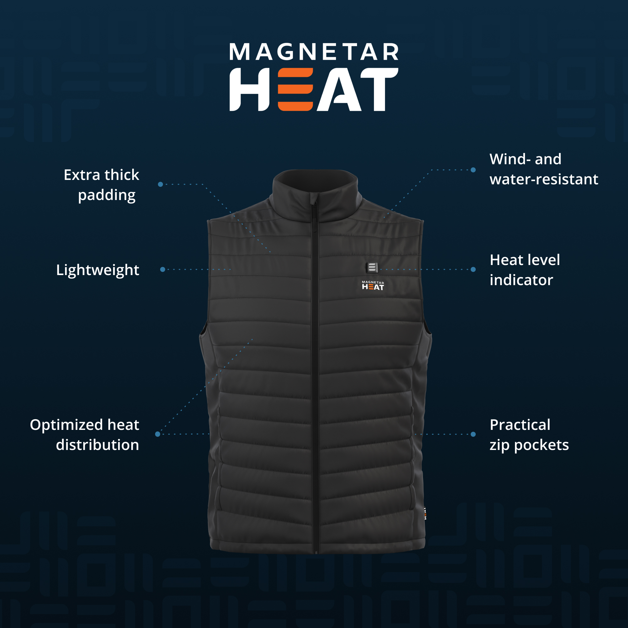 This heated body warmer keeps your body at the right temperature with three heat zones, a powerful battery, and three heat settings.